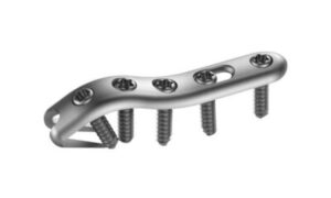 Placa pequeña y versátil con ganchos intramedulares para soporte rotatorio.